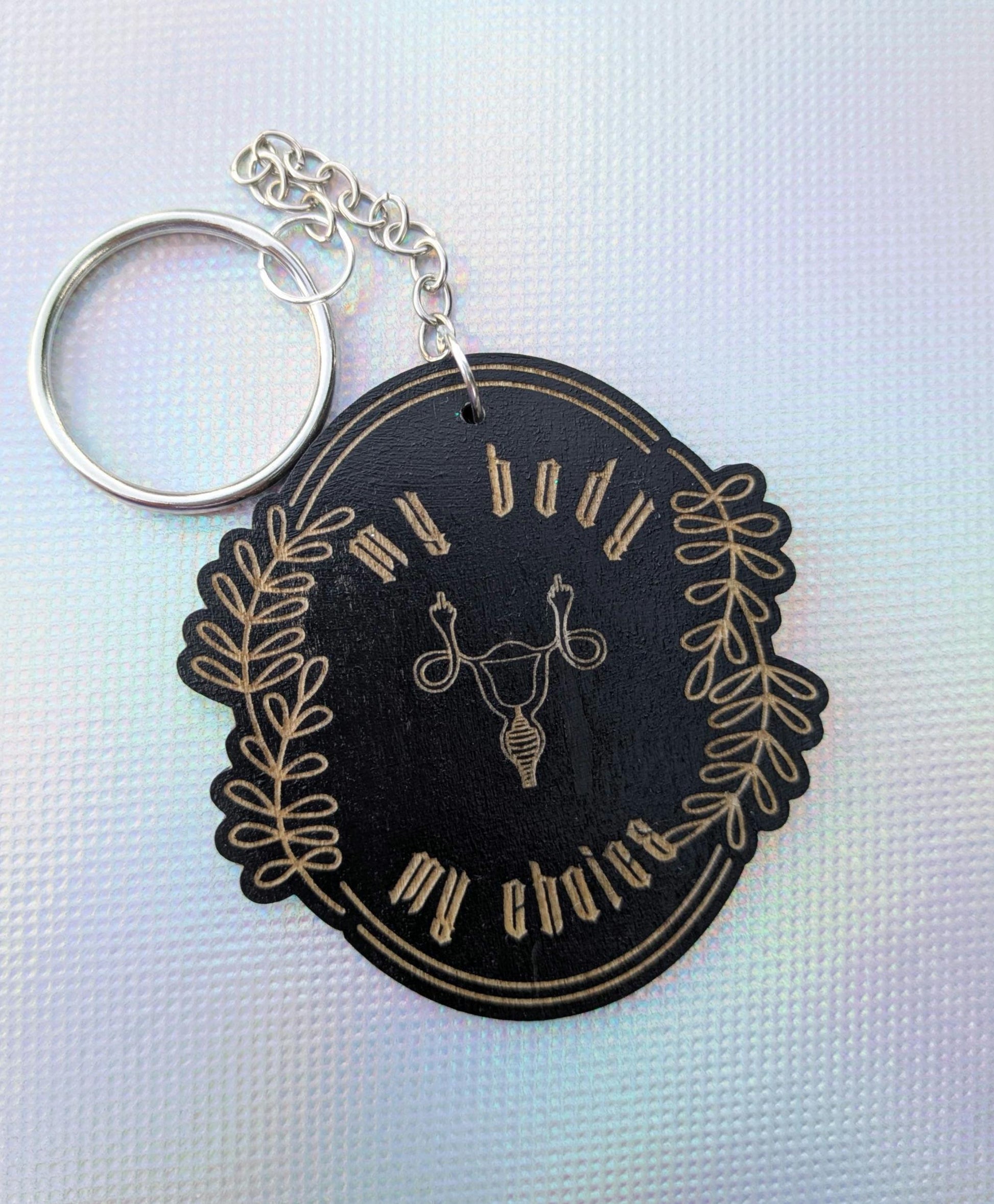 No long-winded description here! Made to order wooden "My body my choice keychain". Pro-choice, pro-women. I'd love to customize this for you if black isn't your color - just shoot me a message!