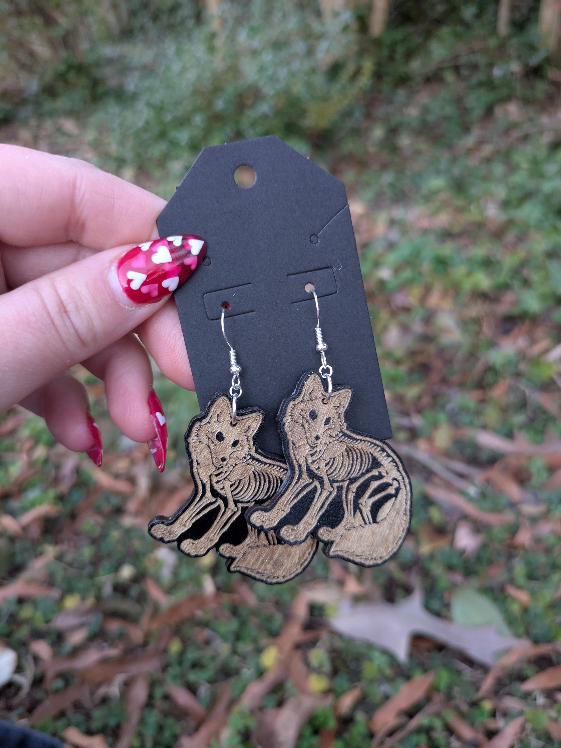 Wooden Fox Skeleton Earrings - Laser Cut & Engraved Handmade Wooden Jewelry